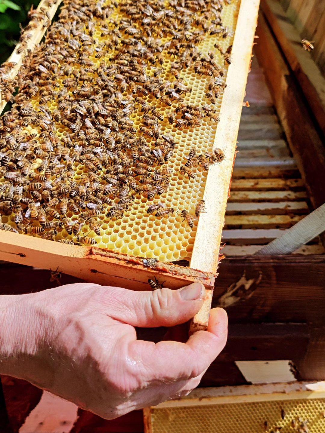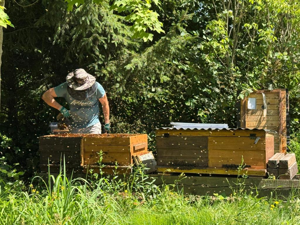 Unser Vater ist das Herz der Bosch Bienenbar. Mit viel Geduld und Fachwissen kümmert er sich um jedes einzelne Volk – vom Aufbau der Bienenkästen bis zur Honigernte.